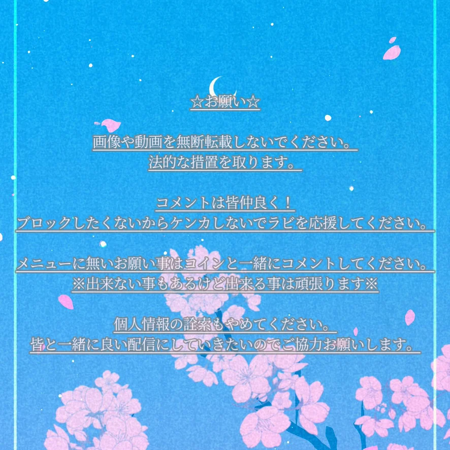 いつも応援ありがとうございます。改めて配信中の注意事項をお知らせいたします。